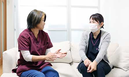 精神疾患、難病などさまざまな疾患を抱えながら療養されているご利用者様にむけて医師の方と相談しながら訪問回数や看護内容を提案いたします。